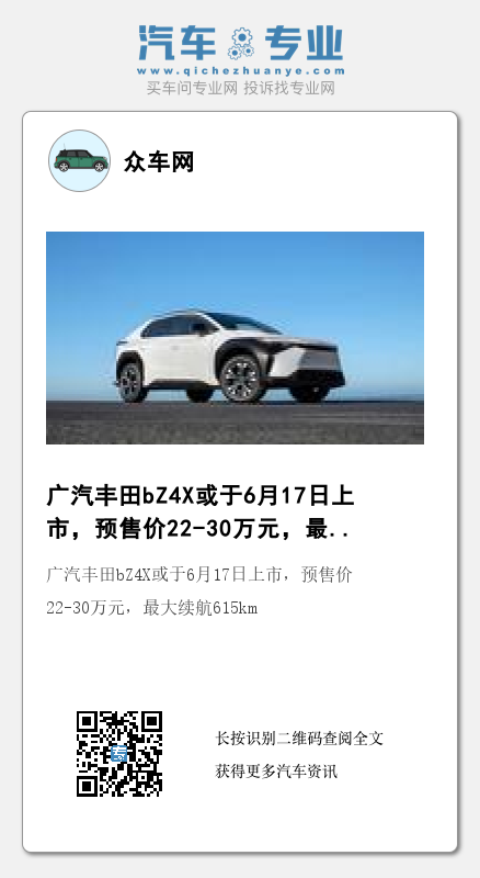 日前,我们从相关渠道获悉,广汽丰田bZ4X(图片)预计将于6月中下旬正式上市,暂定上市日期为6月17日。新车定位为纯电动中型SUV,基于e-TNGA纯电动平台打造,此前已经开启预售,共推出5款车型,预售价区间为22-30万元。