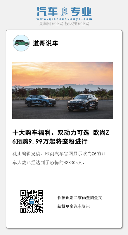 十大购车福利、双动力可选 欧尚Z6预购9.99万起将宠粉进行到底