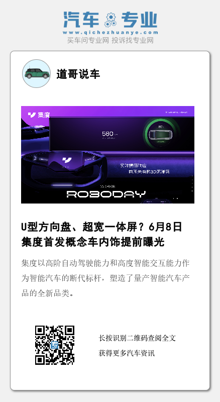 值得一提的是,此次集度首款汽车机器人概念车ROBO-01即将于6月8日晚19点在百度元宇宙“希壤APP”全球首发,并将实时通过集度官方视频号、抖音进行直播。