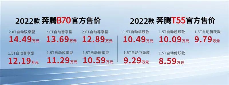 凭借对用户需求的精准洞察,从同级领先的丰富配置到最具诚意的越级价值,焕新升级的2022款奔腾B70与奔腾T55两款车型无疑都是同级内高质价比的存在,也展现出了一汽奔腾绝对的诚意。而随着两车在市场中的持续发力,必将助力一汽奔腾销量再创新高。