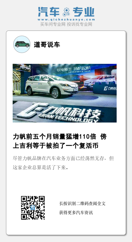 借助吉利帮扶 力帆汽车业务重启销量猛涨