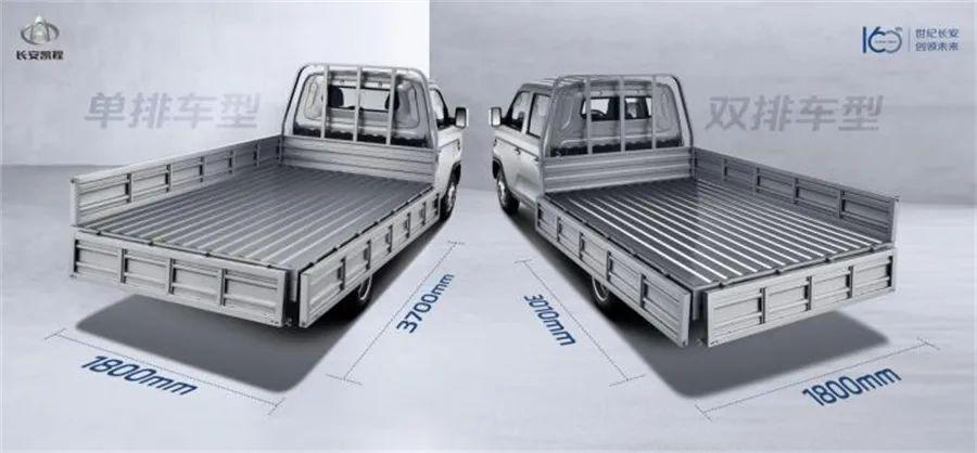 对于小轻卡来说,空间就是它们的核心竞争力。长安神骐PLUS的长宽高分别为5,915mm/1,900mm/2,015mm,轴距3,600mm,在小轻卡中算得上天花板级的尺寸了。在较大的尺寸之下,神骐PLUS将更多的空间分给了货箱。其中单排车型货箱长宽高分别为3,700mm/1,800mm/375mm,双排车型货箱长宽高分别为3,010mm/1,800mm/375mm,最大额定载质量为1,700kg。
