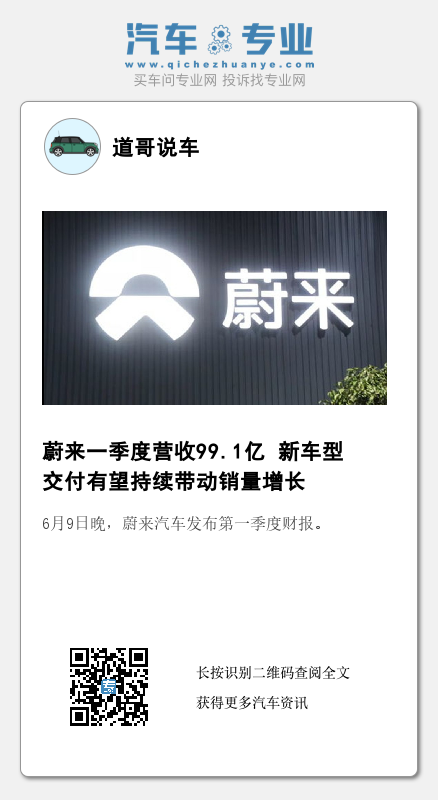 6月9日晚,蔚来汽车发布第一季度财报。数据显示,蔚来一季度总营收达到99.106亿元,同比增长24.2%,已经连续八个季度实现正增长;整车销售毛利率18.1%,净亏损17.8亿元,环比收窄16.8%;现金储备533亿元。