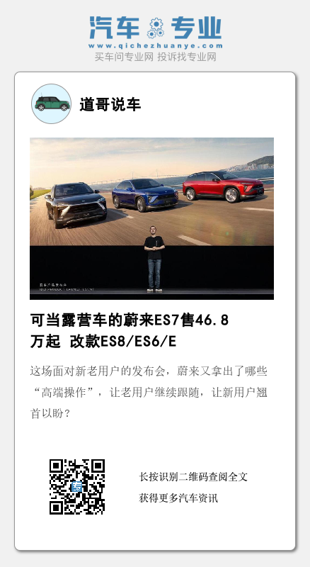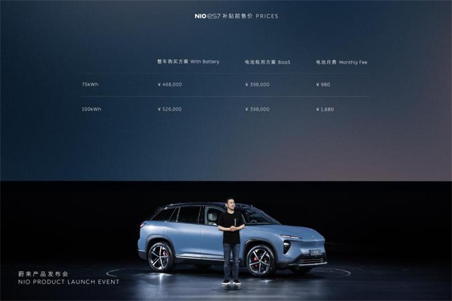 蔚来创始人、董事长、CEO李斌表示,ES7是40-50万元级配置天花板。据官方介绍,新车定位中大型SUV,主打大五座布局,共推出2款车型,采用整车购买方案,补贴前售价46.8-54.8万元;采用电池租用方案,最低需要39.8万元,预计于8月28日交付。