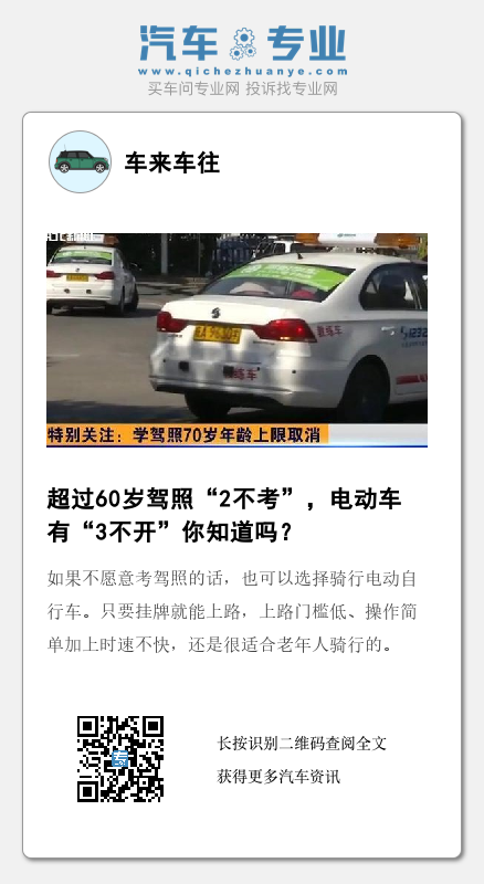 不过因为年龄原因,60岁以上老年人在报考这些驾照时,可能会比年轻人要多些步骤。除了要携带有效身份证件、免冠照片、体检报告外,70岁以上老人还要有反应力、判断力、记忆力三力测试报告,通过考试才能顺利考驾照。
