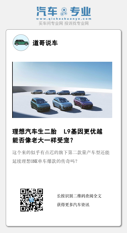 众所周知,理想汽车之所以能够以理想ONE“一车之力”与蔚来、小鹏等造车新势力相抗衡,没有续航焦虑的增程式技术功不可没,如今理想L9再次沿用增程式技术路线,此外,理想L9较之理想ONE的家庭“奶爸”用车的定位没变,SUV品类没变,大六座、大空间的产品卖点没变,高度自研的智能化没变,配置丰富没变。