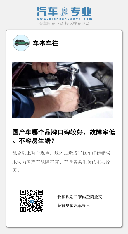 综合以上两个观点,这才是造成了修车师傅错误地认为国产车故障率高、车身容易生锈的主要原因。
