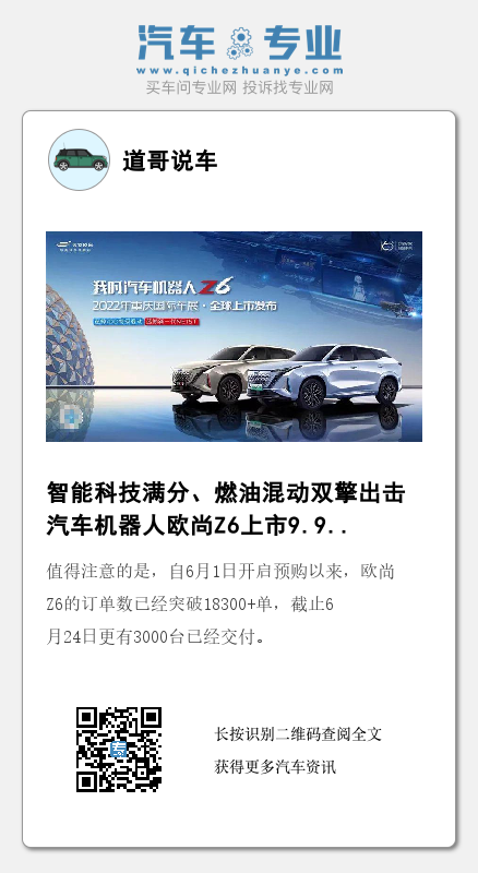 “7大行业首创、8大行业领先、9大同级领先、19项全系标配”,欧尚Z6以不俗的产品实力和诚意满满的售价,不仅为Z世代年轻人带来了一款高颜、高智、高能、高质的惊喜座驾,更践行了欧尚汽车“为客户提供的价值,是客户付出成本的两倍”的承诺。相信欧尚Z6上市后必将掀起一波新的购车狂潮,助力欧尚汽车持续突破向上。