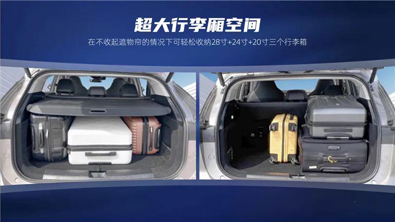 储物上,全新第三代荣威RX5/超混eRX5行李厢尺寸为910*1028*455mm,总容积达340~1291L,在不收起遮物帘的情况下,可轻松收纳28寸+24寸+20寸三个行李箱,再加上多达22处储物空间,完全能够满足日常出行储物需求。