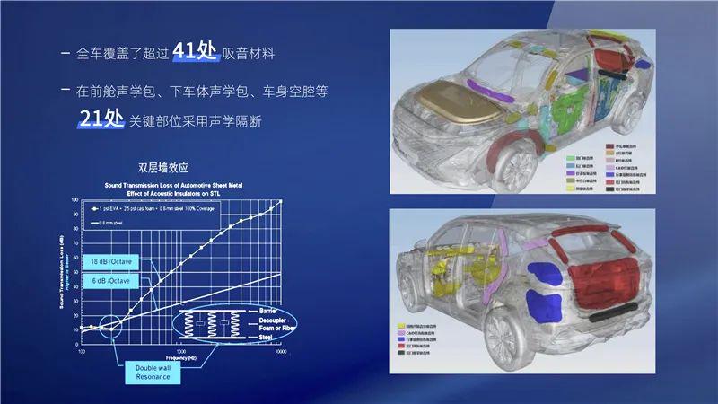 另外,全新第三代荣威RX5/超混eRX5全车覆盖超过41处静音措施,覆盖面积及用料扎实程度在同级车中位居翘楚,针对关键部位,更采用行业首创的高倍率吸音材料。在前舱声学包、下车体声学包、车身空腔等21处关键部位采用声学隔断,如前围内隔音垫采用多层减震、隔音设计的“三明治结构”,其双层墙效应能有效隔绝发动机舱内噪声。