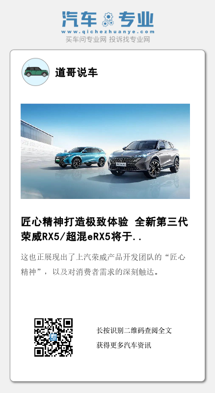 可以说,无论是空间、静谧,还是乘坐舒适性以及驾乘方面,全新第三代荣威RX5/超混eRX5都表现出了超越同级甚至是比肩豪车的优秀品质,而这也正展现出了上汽荣威产品开发团队的“匠心精神”,以及对消费者需求的深刻触达。据悉,新车将在7月陆续到店后开启用户试驾,并计划8月双车正式上市,届时还能带来哪些惊喜,让我们一同期待吧。