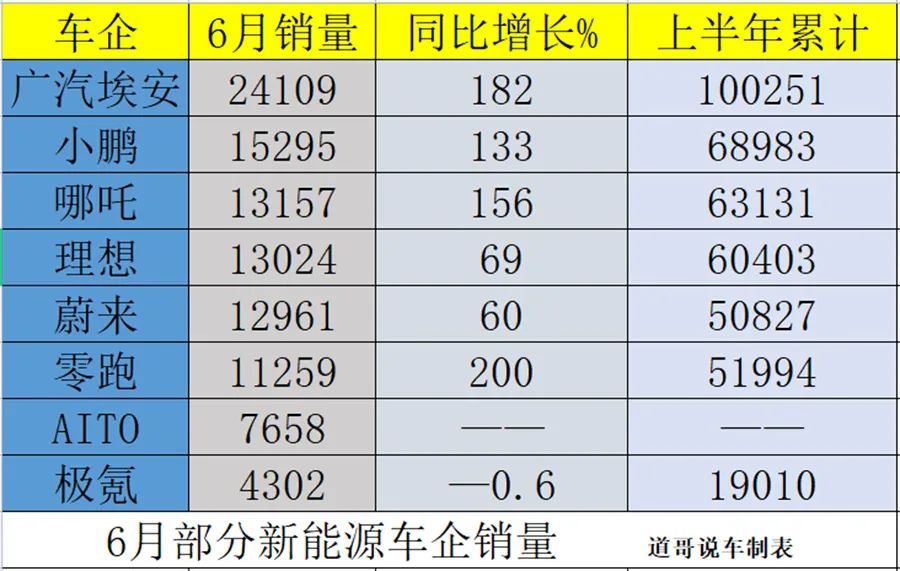 《道哥说车》编辑注意到,今年6月蔚来汽车、小鹏汽车、理想汽车、哪吒汽车、零跑汽车5家企业单月交付量过万,同比、环比均实现增长,可谓欢歌一片。不过值得一提的是,传统意义上的“蔚小理”格局几乎已经被打破,甚至现有五强的格局也有所松动。