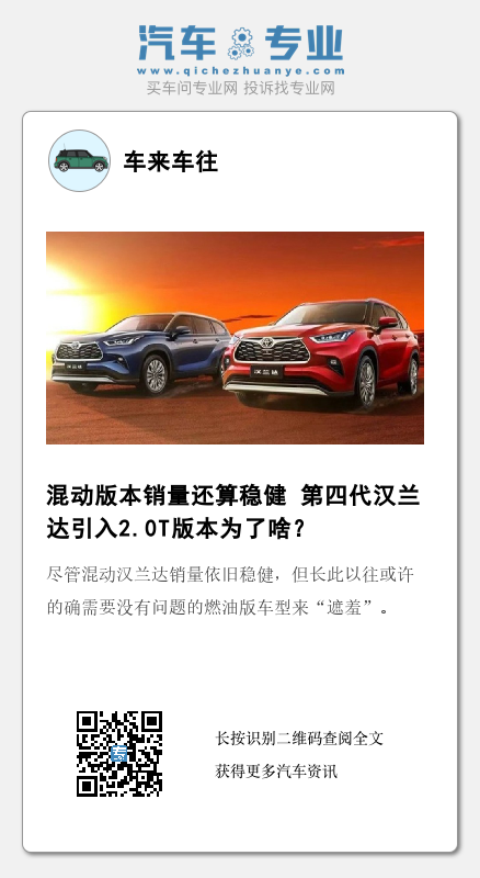 尽管目前看来混动汉兰达销量依旧稳健,但长此以往或许的确需要没有问题的燃油版车型来“遮羞”。