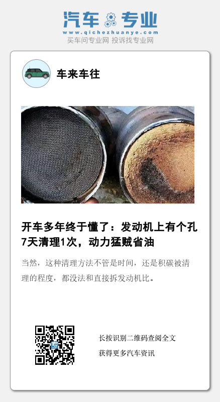 有很多老司机也是表示,开车多年后终于懂了,发动机上这个孔7天到1个月清理1次,动力猛还贼省油。而清理三元催化器可以成为一种习惯,就像刷牙一样。当这种行为成为习惯后,基本不会遇到三元催化器被堵塞的情况了。