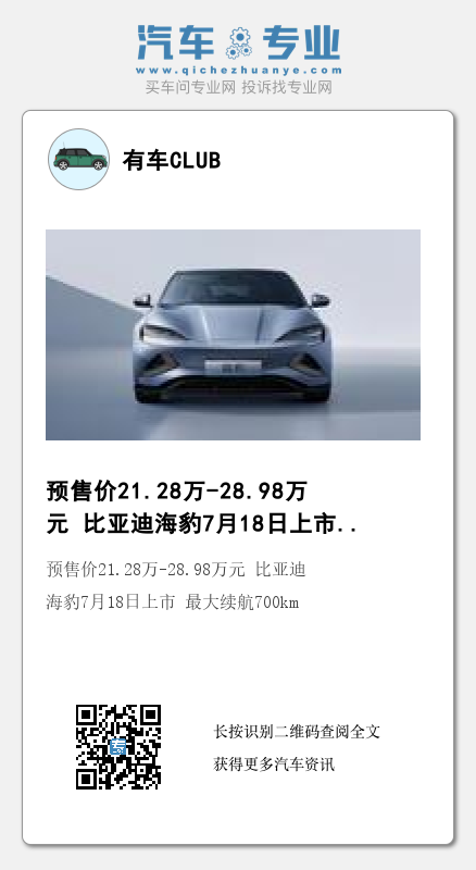近日,我们从相关渠道获悉,比亚迪海豹(图片)将于7月18日上市,此前公布的预售价为21.28万-28.98万元。海豹基于e平台3.0打造,共提供三个续航版本的车型,最大续航里程为700km。