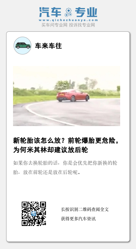 但是某些轮胎厂家,甚至像米其林这样的国际一线大牌,也给出相应的建议就是,如果说只换两个轮胎,建议把新轮胎放在后轮。