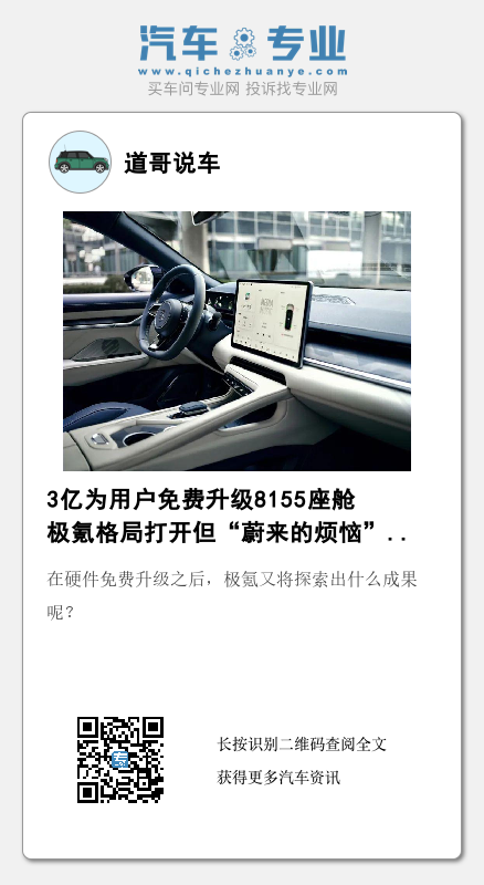 事实上目前市场中并非没有进行硬件升级的车企,此前蔚来为现款ES8、ES6、EC6车主推出了智能系统alder硬件焕新升级服务,价格从6900元到12000元不等,而在此之外的特斯拉硬件升级也是要钱的。对比看来,极氪此轮硬件升级可谓开了行业先河。