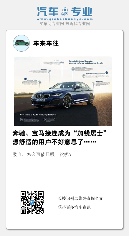 前不久,奔驰针对国内市场EQS推出了后轮主动转向系统(10°转向角度)的付费订阅模式,加钱享受更好体验的操作让奔驰一度成为众矢之的。而宝马,似乎也跟着奔驰变成了“加钱居士”。