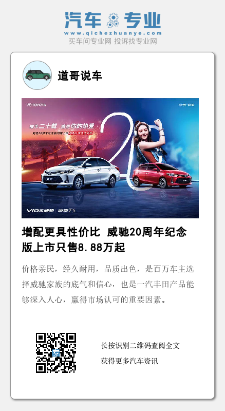 值此20周年之际,为了感恩每一位粉丝,7月13日一汽丰田威驰20周年纪念版车型闪耀上市,新车不仅配备了20周年纪念版标识,还新增了多项实用性配置,性价比再次得到提升。其中威驰20周年纪念版售价8.98万元,威驰FS 20周年纪念版售价8.88万元。