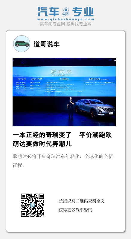 据现场一些首批欧萌达车主所说,自己当初之所以看上这款车,首先始于颜值。欧萌达采用了奇瑞最前沿的“Art in motion”潮流设计语言,整体设计前卫,打破了很多消费者过往对奇瑞的设计认知。