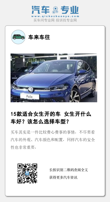 至于女生该怎么选择,这里给大家罗列出来一些,相信会对大家选车有很大帮助的。同时你也可以把自己喜欢的车型或问题留在评论区,我们一起讨论一下。