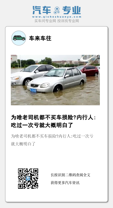所以有内行人表示,车损险看上去不划算,但主要车主吃一次亏就明白了。