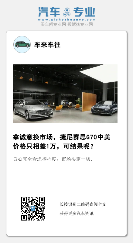 通过捷尼赛思G70中美价格对比,我们可以得出一个结论。消费者买车不完全只看性价比,对于消费者认可的品牌,就算是减配加价,消费者该买的依旧会买。如果一个品牌得不到认可,就算再降2万都没人买,这就是品牌大于性能最好的案例之一。良心完全看追捧程度,市场决定一切。