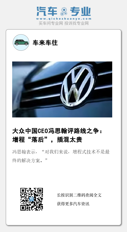 近日,大众中国CEO冯思翰在接受媒体采访时,点评纯电、插混与增程式的电动车路线之争。并指出,增程式混合动力是一项过渡技术,大众集团不会追求这一点。