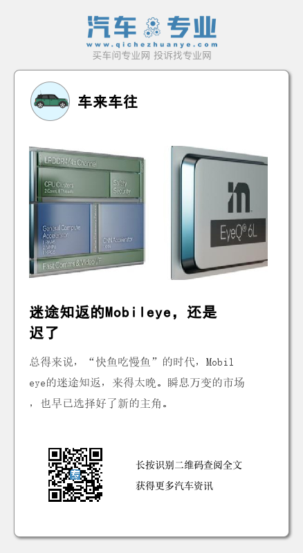 总得来说,“快鱼吃慢鱼”的时代,Mobileye的迷途知返,来得太晚。瞬息万变的市场,也早已选择好了新的主角。
