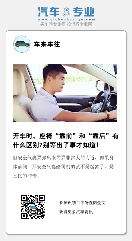 但开车开久了的老司机,多喜欢让座椅靠后,让自己的姿势稍微“后仰”。所以开车时座椅“靠前”和“靠后”的区别在哪里?