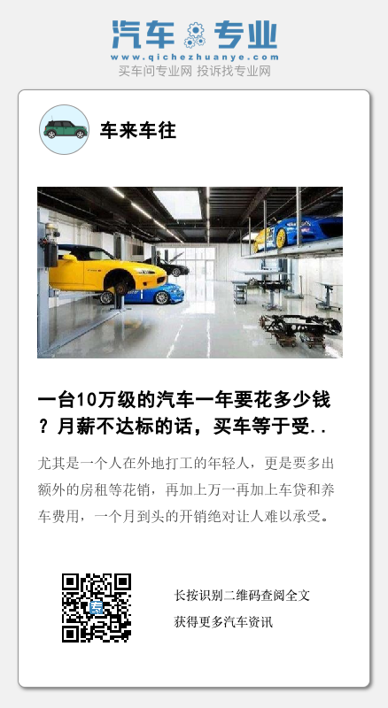 按照这位卡罗拉车主的情况来看,购买一辆10万级的家用车一年里的养护费用基本就能达到2万元上下,平均每个月1700元。如果是贷款买车,这个开销还要高上许多。因此,对于许多刚刚进入社会,月薪仅有四五千的年轻人来说,短时间内并不建议买车,尤其是一个人在外地打工的年轻人,更是要多出额外的房租等花销,再加上万一再加上车贷和养车费用,一个月到头的开销绝对让人难以承受。