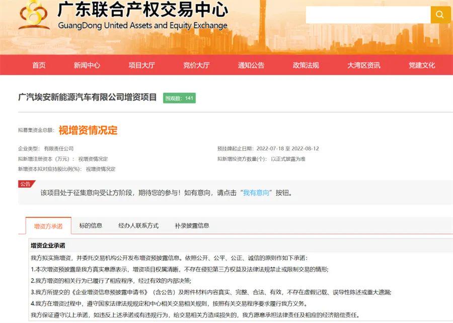 【文/道哥说车 听风吟】据广汽埃安公众号消息,7月18日,广汽埃安新一轮引战增资项目,正式在广东联合产权交易中心开始预挂牌。广汽埃安指出,募集的资金将重点用于新产品开发、新一代电池、电驱研发及产业化建设、智能驾驶、智能座舱、能源生态及产能扩建等核心技术的研发和产业化布局。