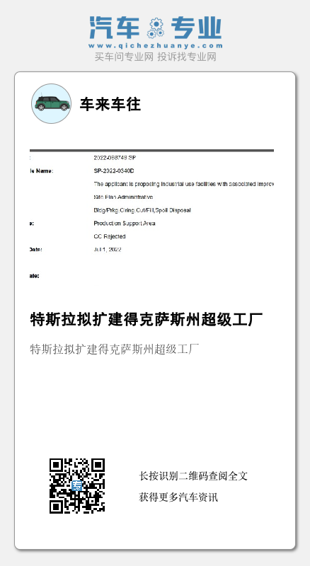 《科创板日报》19日讯,得克萨斯州奥斯汀市政府官网的一份文件显示,特斯拉计划扩建其位于当地的超级工厂。扩建项目将在工厂的一块68.11英亩土地上建造。文件显示,特斯拉这一项目仍处于审批程序之中。