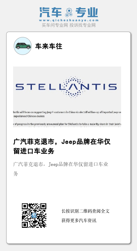 昨日,Stellantis集团在官网发布公告称,因与广汽集团成立的合资公司广汽菲亚特克莱斯勒近年来始终处于亏损状态,且此前讨论的合资公司股权变更计划迟迟没有进展,因此双方正在协商终止合资公司的经营,并将有序停止Jeep品牌的国产化;未来,Stellantis将通过进口的方式独自在中国销售、经营Jeep产品。