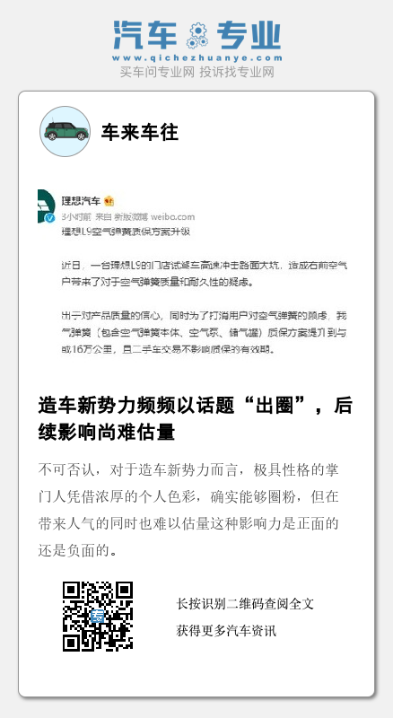 不止于此,日前铺天盖地围绕理想汽车的各类新闻,大都源于李想的发言。这也让业内对从理想汽车技术的探讨,延伸至对理想品牌的争论。