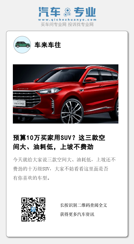 优质车型层出不穷的十万级SUV市场中,消费者若没有明确的选车标准,那在车型选择上的确有点难以抉择。不过,出行局今天就给大家说三款空间大、油耗低,上坡还不费劲的十万级SUV,大家不妨看看这里面是否有你喜欢的车型。