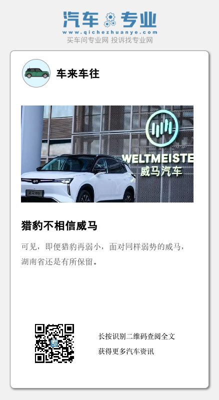 可见,即便猎豹再弱小,面对同样弱势的威马,湖南省还是有所保留。