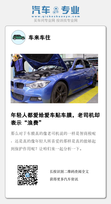 阿宁点评:在阿宁看来,车膜也是有好有坏,在各位车主们挑选车膜时一定要注意!看好车膜的质量,要注意车膜的透明度以及质量等能否达到标准。否则不仅不会对爱车进行保护,反而能够对爱车造成不小的伤害,甚至是威胁到车主的身体健康。