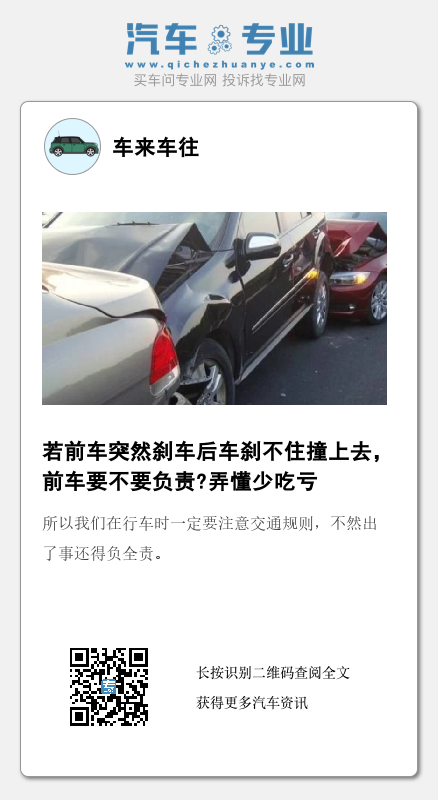 值得一提的是,如果出现这种情况,行车记录仪就非常重要。万一出现这些情况时周围一没有监控,二没有其它汽车或行人当证人,那到底是谁违了规就很难说清楚了。万一前车司机不老实倒打一耙,交通部门在没有足够证据的情况下,只能是默认后车负全责。
