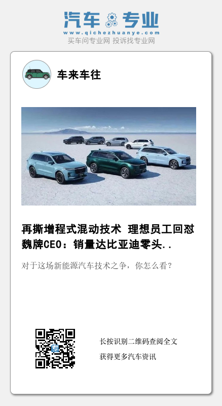 对于此番言论,理想汽车公关部社交媒体总监转发微博回怼:“看销量呗。销量先达到DM-i零头再说,扯别的没用。都是串联式混动的衍生方案,你看人DM-i哪有这么多废话,就是接单接到手软。”