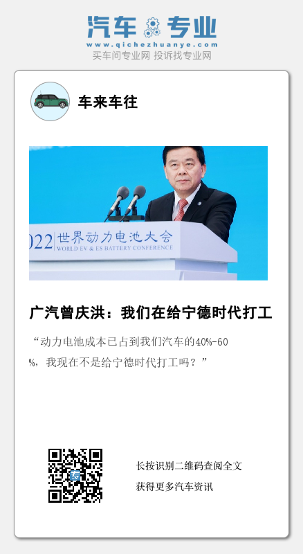 7月21日,2022世界动力电池大会在四川宜宾举办,广州汽车集团股份有限公司董事长曾庆洪在演讲中这样表示。