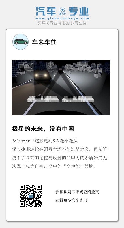 Polestar 3这款电动SUV能不能从保时捷那边抢夺消费者还不能过早定义,但是解决不了高端的定位与较弱的品牌力的矛盾始终无法真正成为自身定义中的“高性能”品牌。