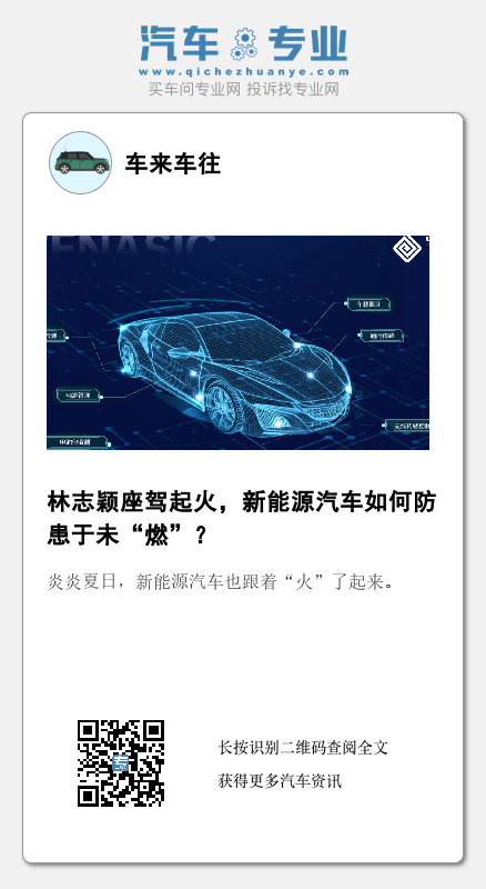 7月2日,一辆新能源汽车在充电状态下发生起火;7月3日,上海南北高架路上一辆电动车起火;7月5日,上海宝山区一辆电动车在路上起火;7月22日,林志颖驾驶电动车发生碰撞,在短短几分钟内汽车烧成空壳……接二连三的起火事件让新能源汽车的安全性再次被推上了舆论的“风口浪尖”。