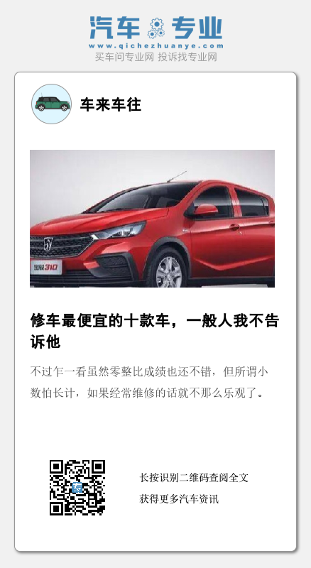 下面我们就来看看除了比亚迪F3,还有哪些车修车最便宜。