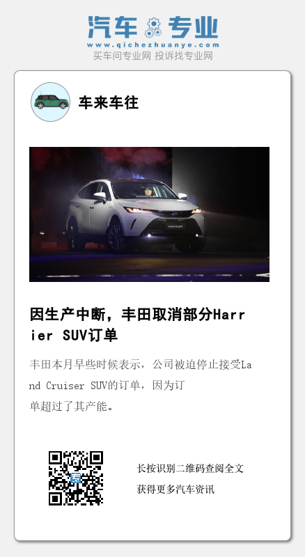丰田本月早些时候表示,公司被迫停止接受Land Cruiser SUV的订单,因为订单超过了其产能。