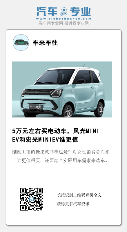 综上来看,不到4万元买电动车的话,宏光MINIEV整体性价比更高。如果想花4万元-5万元买电动车,风光MINIEV更值得买,它在安全配置和续航方面更胜一筹。刚刚上市的糖果款同样也是针对女性消费者而来,谁更值得买,还要结合实际用车需求来选车。