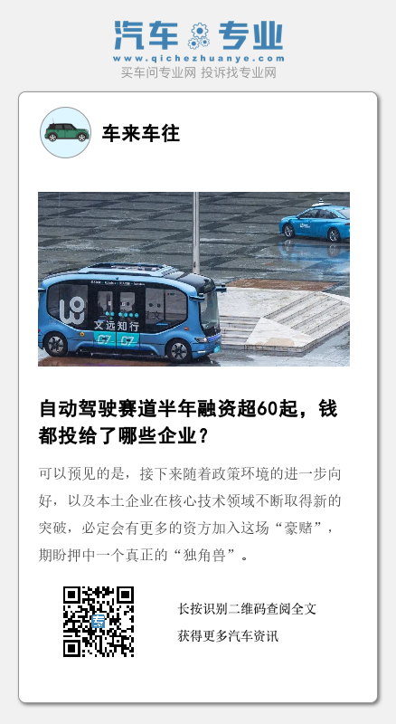 一季度自动驾驶赛道已知至少发生了4起10亿元及以上规模的融资,另有多笔数亿元的融资。而在二季度,除毫末智行、希迪智驾、魔视智能等获得了数亿元新一轮融资,仅如祺出行完成一笔超10亿元融资,投资方包括广汽集团、小马智行、文远知行等。博泰车联网虽然宣布了10亿元C轮融资,但其中由上海国盛资本战略投资的3亿元一季度就已经宣布。