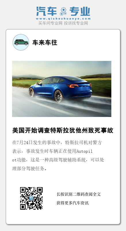上周,NHTSA还对另一起发生在加州的特斯拉与摩托车相撞的致死事故展开了特别调查。7月7日,一名48岁的摩托车手在加州河滨高速公路上与一辆2021款特斯拉Model Y相撞,摩托车驾驶员随后死亡。