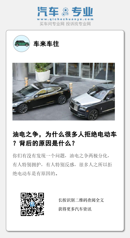 为什么很多人拒绝电动车?背后的原因是什么?现如今街头的电动车越来越多了,虽然很多人接受了电动车,但也有很多人拒绝电动车,甚至放话说:只要油车不停产,我是“绝对”不会买电动车的。你们有没有发现一个问题,油电之争两极分化,有人特别拥护,有人特别反感,很多人之所以拒绝电动车是有原因的。