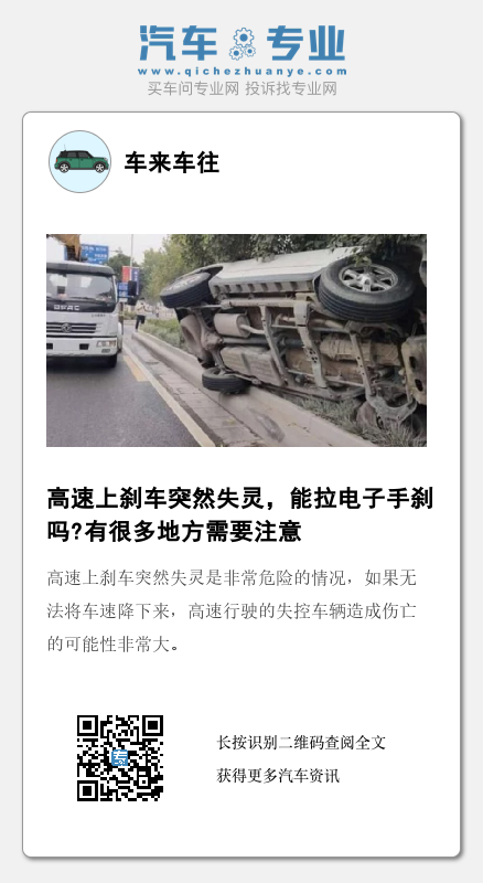 不过汽车上除了脚刹还有手刹,在自动挡汽车普及后又开始流行电子手刹,于是就有车友问出了这样一个问题:高速上刹车突然失灵,能拉电子手刹吗?